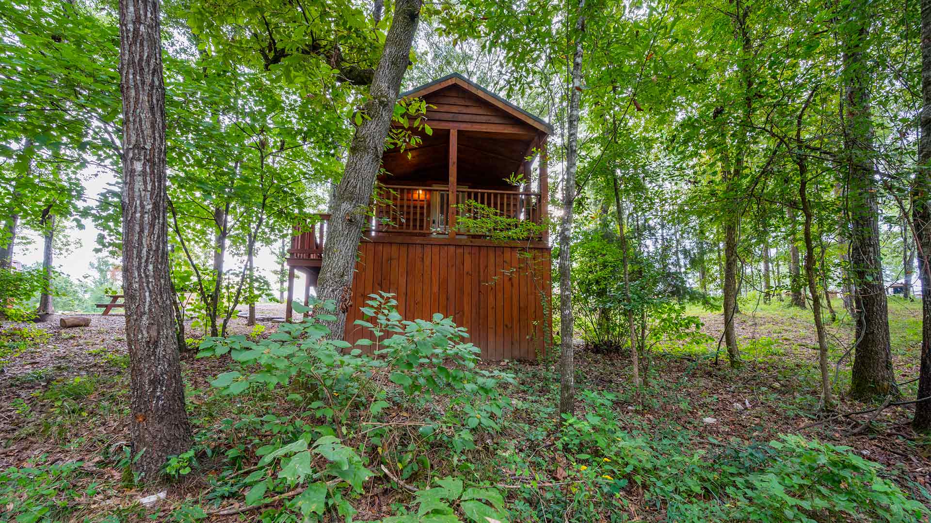 Oak Leaf is a small, one-bedroom cabin that has the best of both worlds. You can sit back and enjoy the sound of birds in the trees while rocking on the porch with your morning coffee, but it is still a short distance off the highway, close to many of the area attractions. It is next door to Fish Tail’s winery, miniature golf, go-carts and more. Your family has an RV but you want a real cabin? Perfect! It sits behind Tiny Town RV park. This cabin sleeps 5 in one queen bed, a twin bunkbed, and twin pullout. It offers wifi, and television w/smart Blu-Ray player to stream your favorite services and DirecTV. It’s pet-friendly (limit of 2), and has a charcoal grill, firepit, picnic table, and coin laundry facilities.